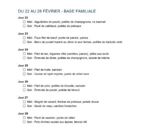 • 4 semaines complètes de menus
