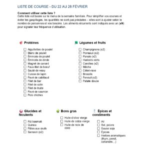 • La liste de courses correspondante